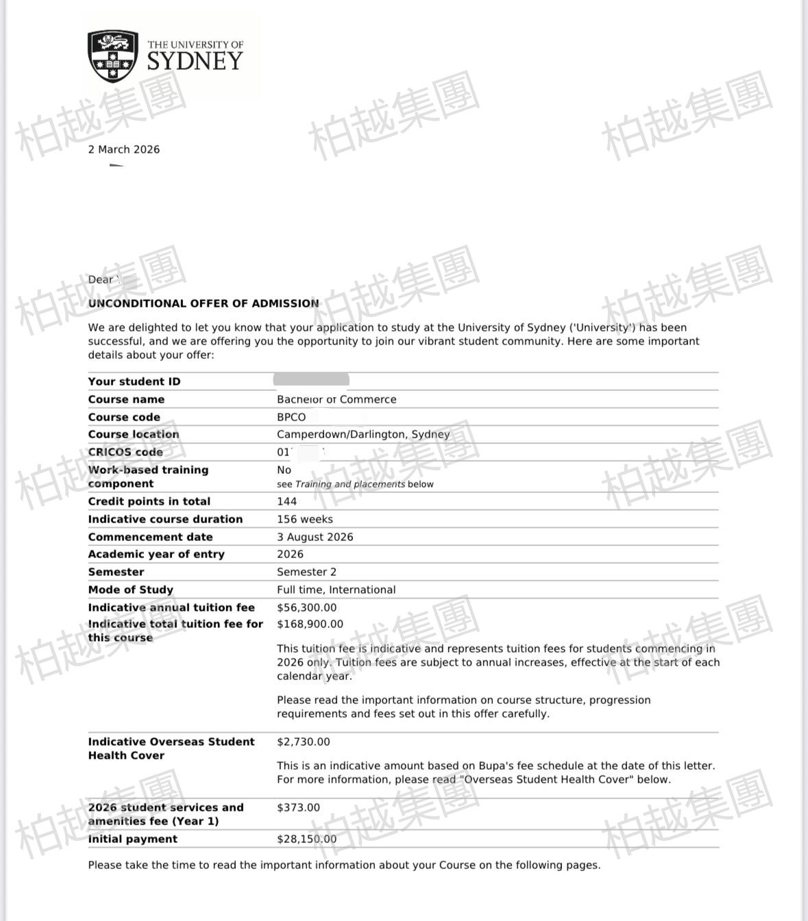 恭喜客戶成功斬獲悉尼大學(QS 世界排名第 19 位)商學院無條件錄取!