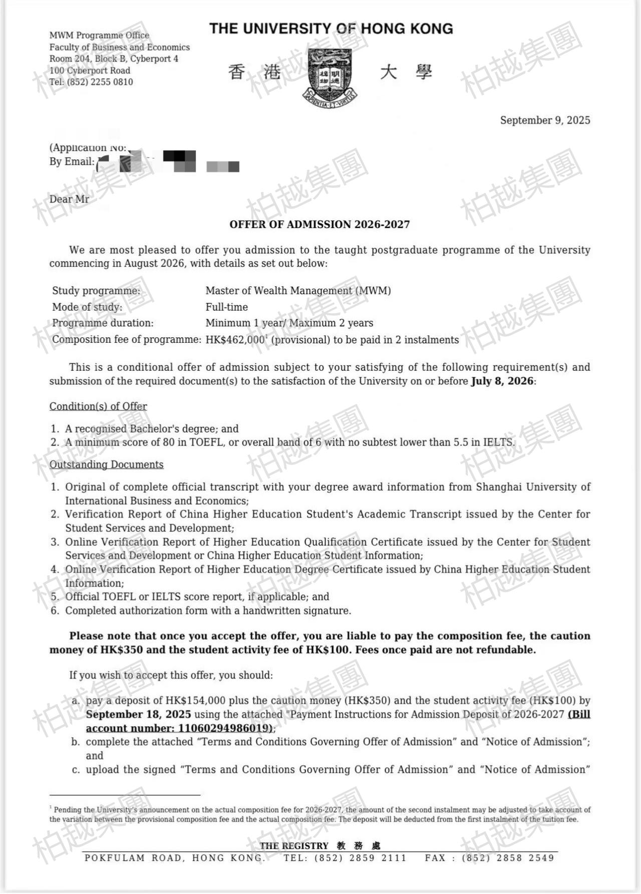 恭喜客戶成功斬獲香港大學(QS 世界排名第 38 位)財富管理碩士(MWM)錄取!
