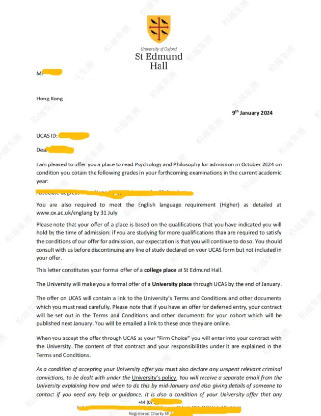 结果:获牛津圣埃德蒙学院 2024 入学 offer,仅需完成课程考核。