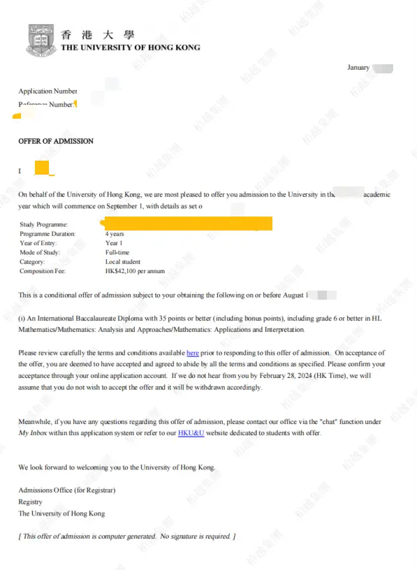 结果:拿下港大本科 offer,4 年全日制学制,学费 9.12 万港币 / 年,满足 IB 条件即可入学!