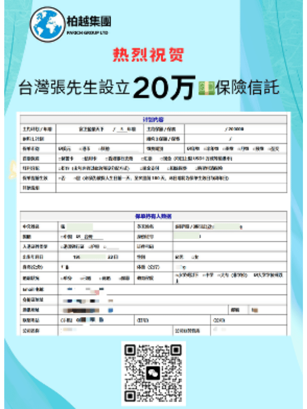 方案: 年缴 20 万美金,连续缴 5 年,总投 100 万美金(约 720 万人民币),绑定 “富卫聚天下” 保单 + 信托