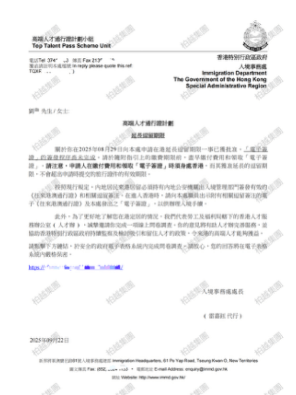 申請获批(2025.8.29 申請,9.22 批覆),可續留香港。