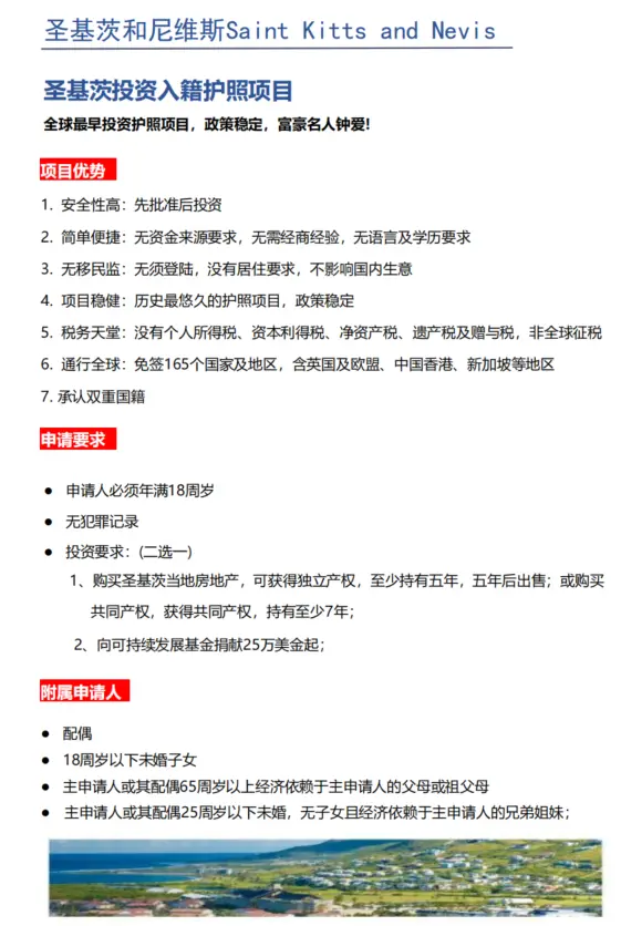 聖基茨投資入籍護照項目