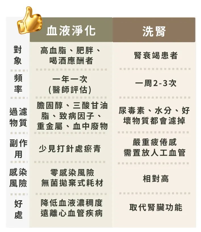 「血液淨化」效果顯著,一次清除50 % 以上:膽固醇、低密度脂蛋白、三酸甘油脂。